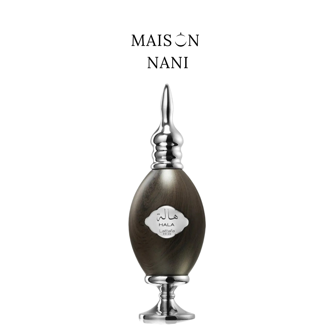 Hala de Lattafa Pride es un perfume unisex con un perfil cálido, especiado y amaderado. Se abre con pimienta y nuez moscada, ofreciendo una salida intensa y vibrante. En el corazón aparecen madera de cedro y ámbar, que aportan profundidad, calidez y elegancia. En el fondo, incienso y ládano dejan una estela oriental, ahumada y sofisticada, ideal para quienes buscan una fragancia con carácter y presencia.