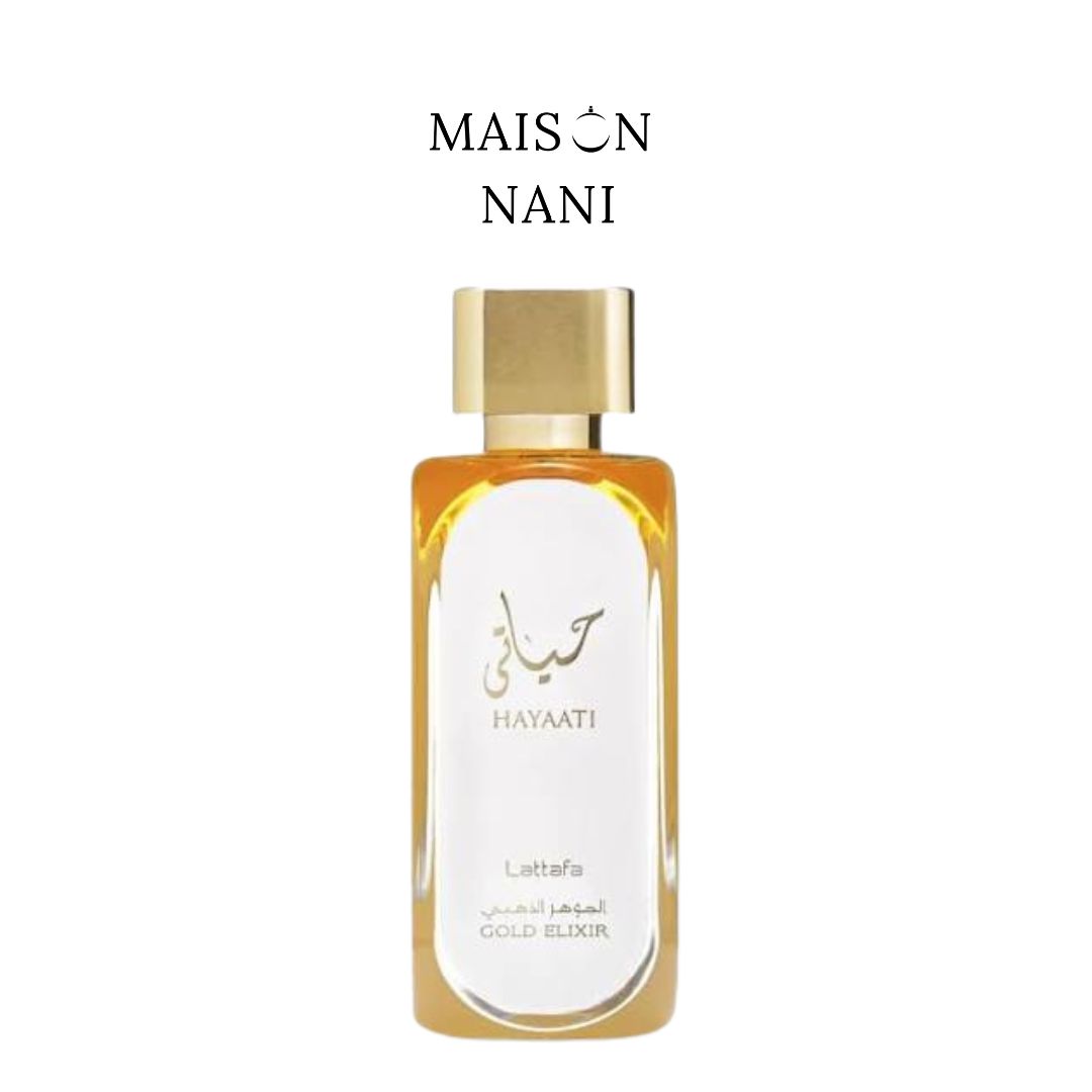 Hayaati Gold Elixir es una fragancia cálida, elegante y envolvente que combina notas cítricas y frutales con un corazón intenso de cuero y especias, terminando en un fondo dulce de vainilla y ámbar. Es un perfume sofisticado y versátil, ideal para quienes buscan un aroma moderno con carácter.