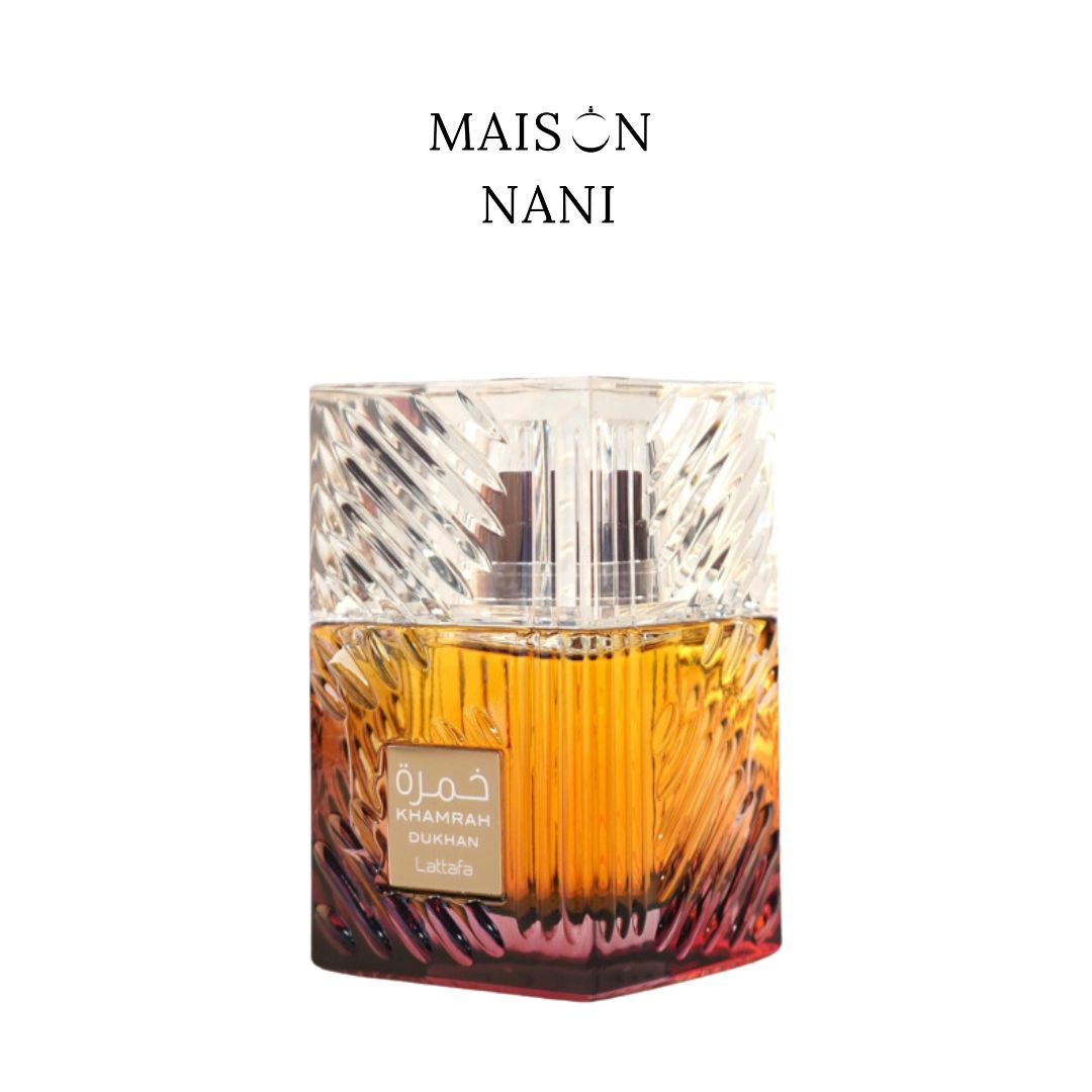 Khamrah Dukhan de Lattafa es una fragancia oriental para hombres, lanzada en 2025, que combina especias vibrantes, pimiento morrón y mandarina en su apertura. En el corazón, el incienso, el ládano, la flor de azahar y el pachulí aportan profundidad y sofisticación. Su fondo cálido de tabaco, praliné, ámbar, haba tonka y benjuí crea una estela intensa y envolvente. Ideal para quienes buscan un aroma audaz, misterioso y lleno de personalidad.