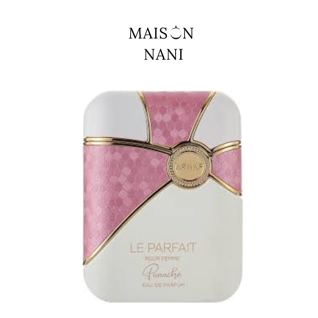 Le Parfait Panache de Armaf es una fragancia femenina elegante y sofisticada, con un toque moderno y encantador. Su apertura floral con pimienta rosa aporta frescura y chispa, mientras que el corazón de iris y jazmín añade una suavidad delicada y refinada. El fondo de pachulí, vainilla y almizcle envuelve con calidez, dejando una estela sensual y duradera perfecta para cualquier ocasión.