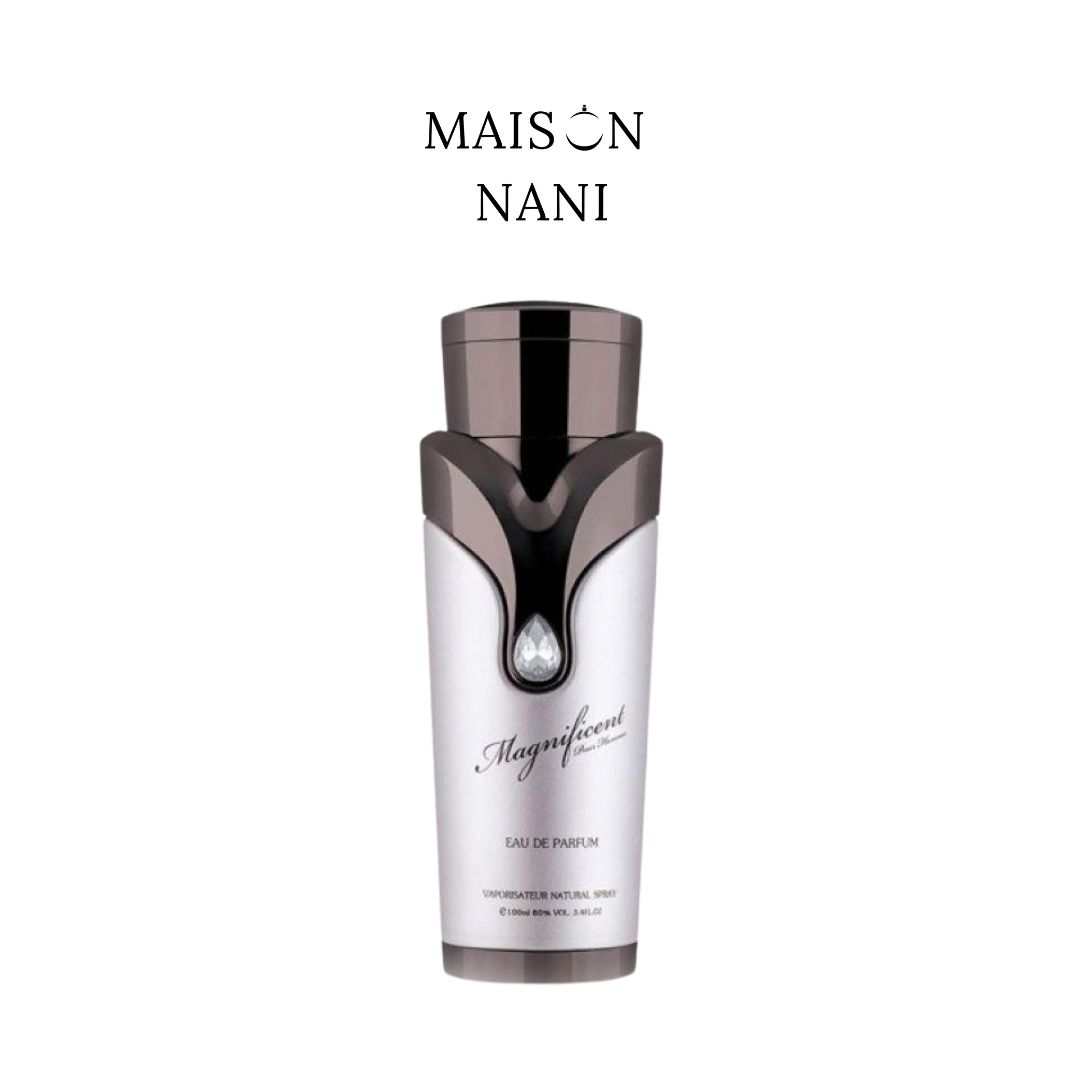 Magnificent Pour Homme de Armaf es una fragancia oriental especiada para hombres, diseñada para destacar con elegancia y carácter. Abre con una mezcla vibrante de bergamota y gálbano, que da paso a un corazón especiado de manzana, jengibre y notas cálidas. Su fondo envolvente combina vainilla, gamuza, maderas, almizcle, cedro y pachulí, creando un aroma sofisticado, masculino y duradero. Ideal para el hombre moderno y seguro de sí mismo.