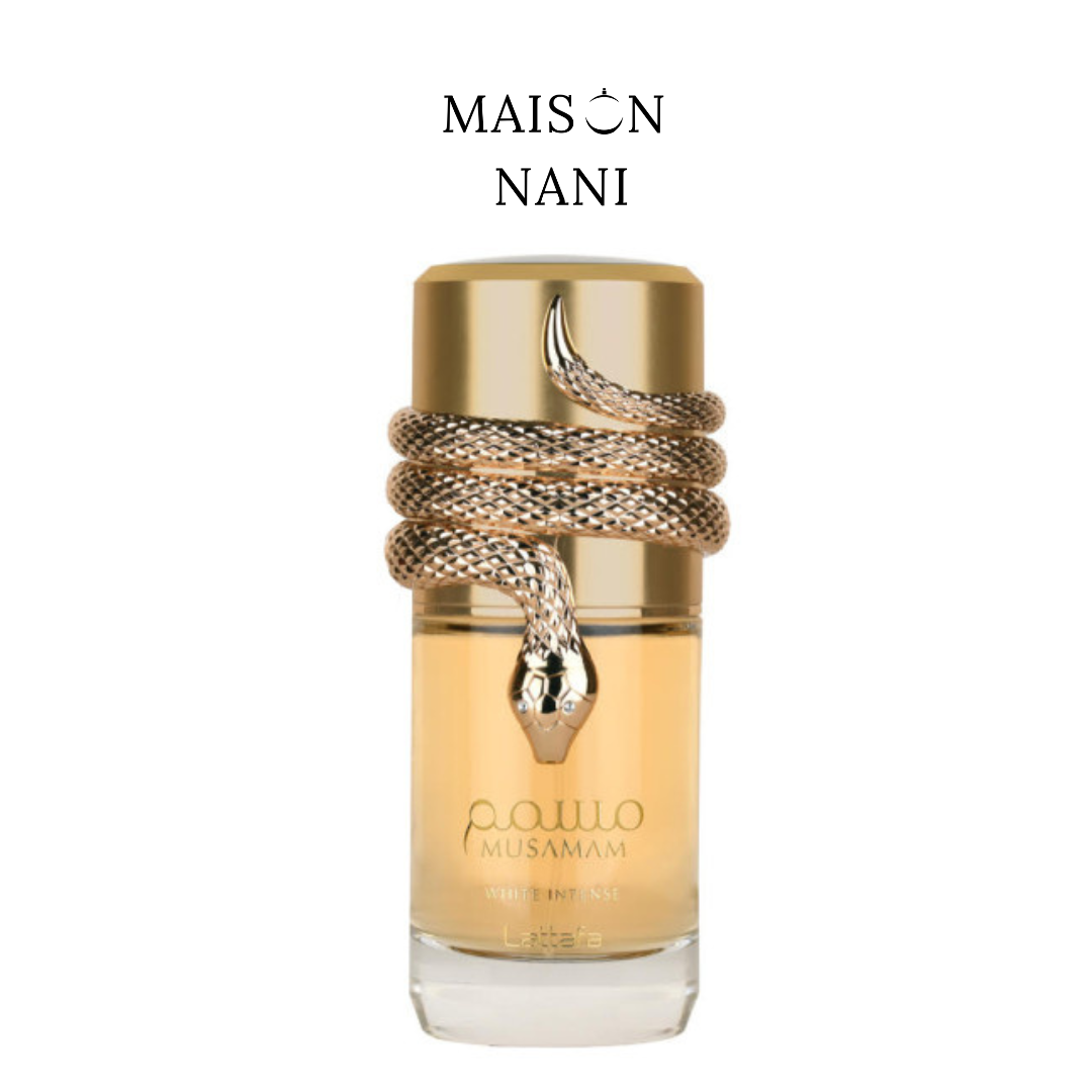 Musamam White Intense de Lattafa es una fragancia unisex oriental floral con un carácter cremoso y elegante. Combina una apertura cítrica y especiada con un corazón exótico de coco y flores blancas, terminando en un fondo cálido y amaderado con almizcle. Es un perfume sofisticado y envolvente que destaca por su mezcla cremosa, dulce y ligeramente especiada.