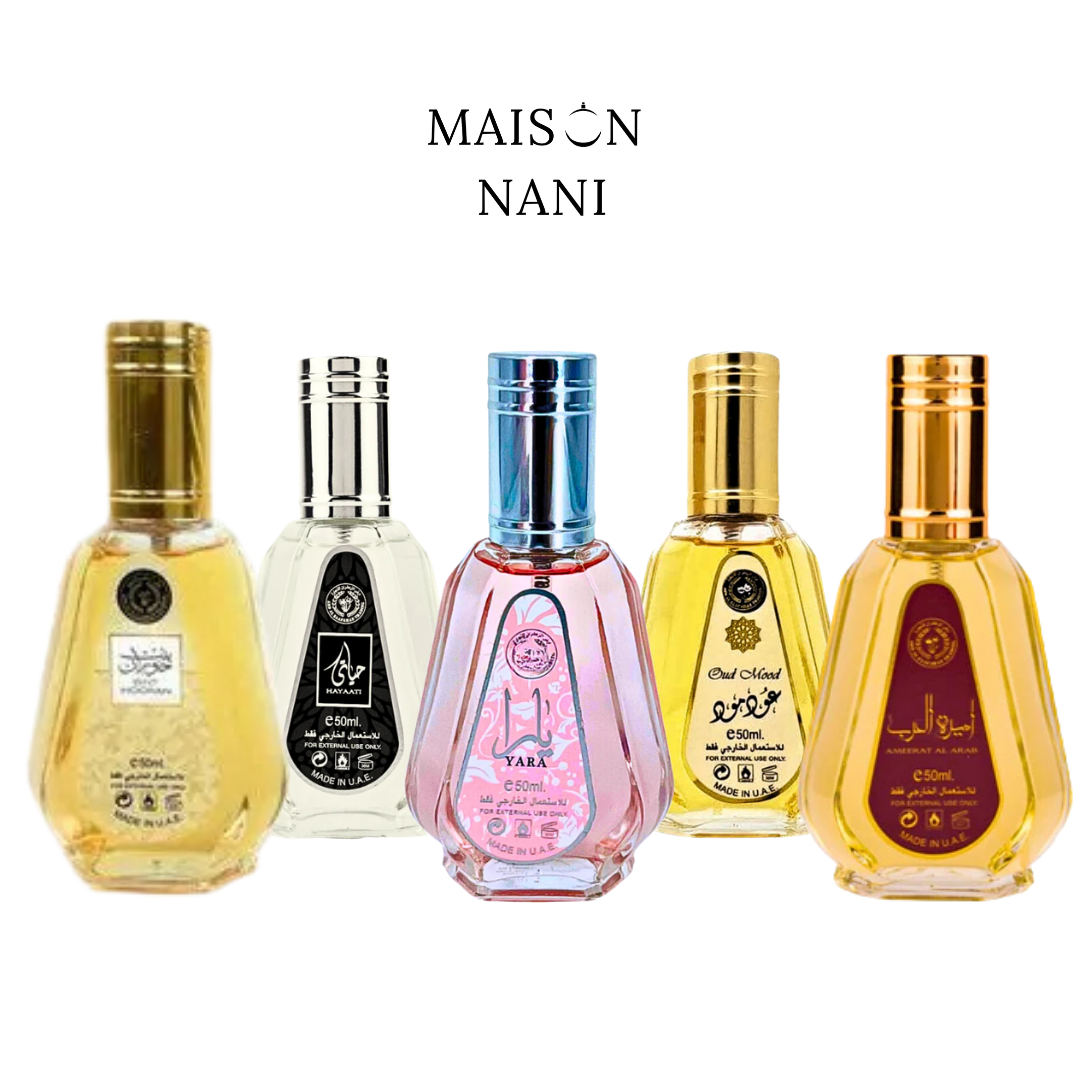 Este pack de 5 minitallas es perfecto para descubrir diferentes aromas árabes en un formato práctico, cómodo y muy versátil. Reúne una selección ideal para quienes quieren probar varias fragancias antes de elegir su favorita, para llevar siempre en el bolso, de viaje o incluso para regalar.