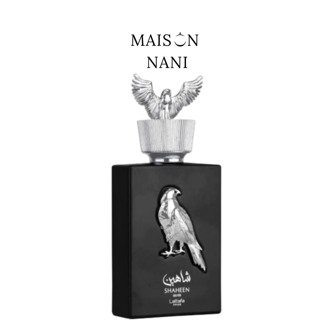 Shaheen Silver de Lattafa Perfumes es una fragancia unisex amaderada – ámbar con un perfil fresco y sofisticado que combina notas cítricas afrutadas con un corazón terroso y floral, asentándose sobre una base profunda y elegante. Se ha hecho muy popular por su carácter versátil y perfil elegante que muchos comparan con la familia olfativa de Aventus.